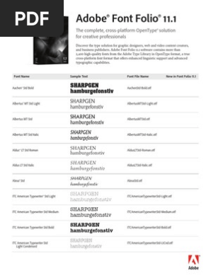 Adobe font folio 11.1 is a collection of more than 2,400 opentype® fonts from the adobe type library. Adobe font folio is a collection of more than 2,400 opentype fonts, designed by several renowned type foundries. Pada awal 2005, terdapat 10.000 fon yang tersedia dalam format opentype.